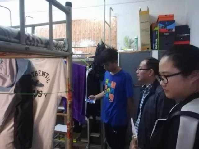 黄书记和辅导员一行七人,深入17栋和21栋我院每个学生宿进行大排查情况,询问学生们寝室生活中遇到的难题并给予解答。并叮嘱同学们一定要注意寝室用电安全,禁止使用大功率电器,同时要注意保持寝室卫生。查寝过程中院学生会生活部始终保持严谨的态度,细心检查,认真记录各个寝室的查寝情况。