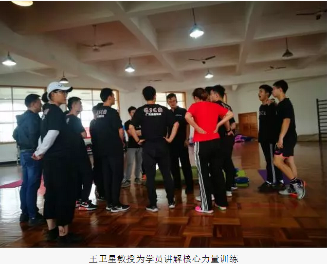 简短的开班仪式结束后,王卫星教授为培训班学员和花椒师生作了题为“当前职业化项目体能训练思路与方法”专题学术报告。报告从体能训练的重要地位、职业化项目体能训练的功能定位、速度力量的影响因素及训练方法、常见运动损伤的原因及预防等四个方面,对当前国内外体能训练的前沿与发展趋势进行了阐述,报告信息量大、案例丰富、讲解生动,为大家带来了运动训练的全新理念。