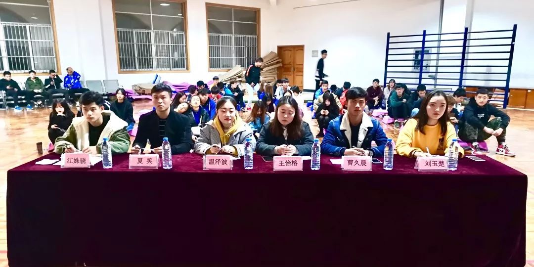 出席本次活动的评委有艺术学院15级音乐学温泽波,王怡榕;体育与健康学院学生会主席曹久晨,副主席夏笑; 文艺部部长刘玉楚,副部长江姝骁。
