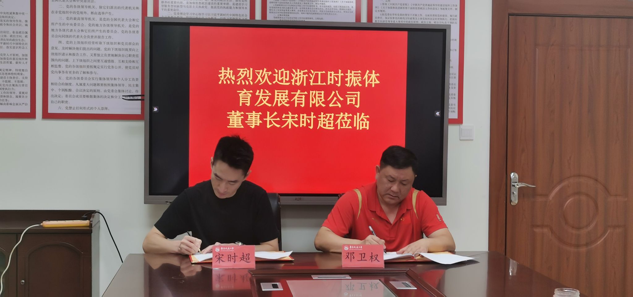 浙江时振体育发展有限公司人力资源部经理杨涛、财通证券江西分公司经理沈义力,以及我院竞赛中心主任张扬、体育专业教学部主任李政、小球教研室主任(校乒乓球队主教练)王剑等参加洽谈会和签字仪式。