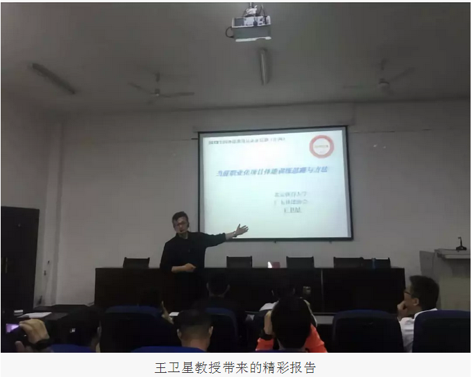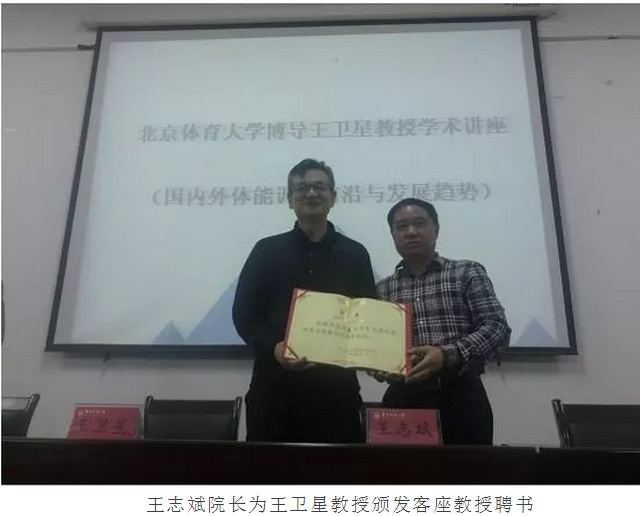 简短的开班仪式结束后,王卫星教授为培训班学员和花椒师生作了题为“当前职业化项目体能训练思路与方法”专题学术报告。报告从体能训练的重要地位、职业化项目体能训练的功能定位、速度力量的影响因素及训练方法、常见运动损伤的原因及预防等四个方面,对当前国内外体能训练的前沿与发展趋势进行了阐述,报告信息量大、案例丰富、讲解生动,为大家带来了运动训练的全新理念。