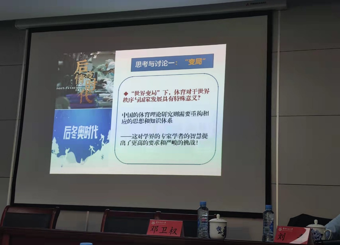 2022年10月18日下午,体育与健康学院本学期第三场学术报告在崇武楼101举行。本次活动特邀成都体育学院刘青教授为主讲嘉宾,报告主题为:“变局—战略—学科—兼谈体育强国建设的几个问题”,学院研究生及教师参加了此次学术报告,报告会由学院院长邓卫权教授和副院长陈荣教授主持。